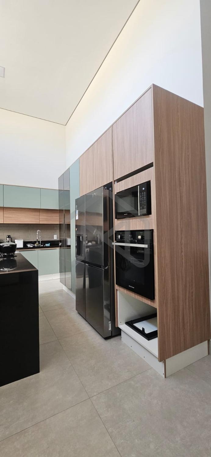 Sala de estar e jantar integradas com pé direito alto, proporcionando boa iluminação natural e ventilação, lavabo, escritório, cozinha com ilha de apoio equipada com cooktop, forno elétrico, 03 suítes, sendo 01 máster com closet, área de serviço.