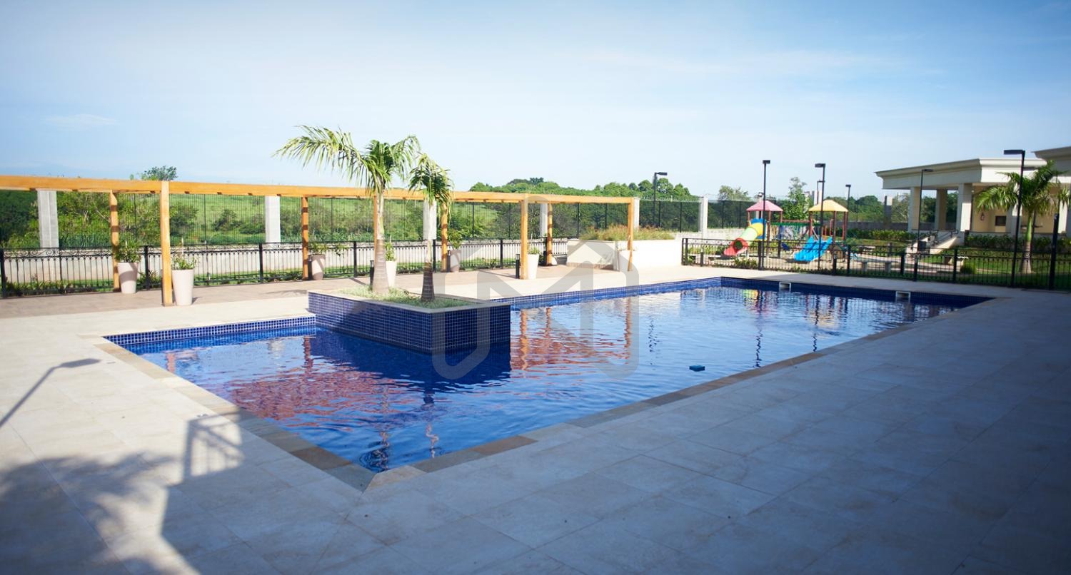 Área de lazer privativa: Piscina, espaço gourmet e banheiro social externo.