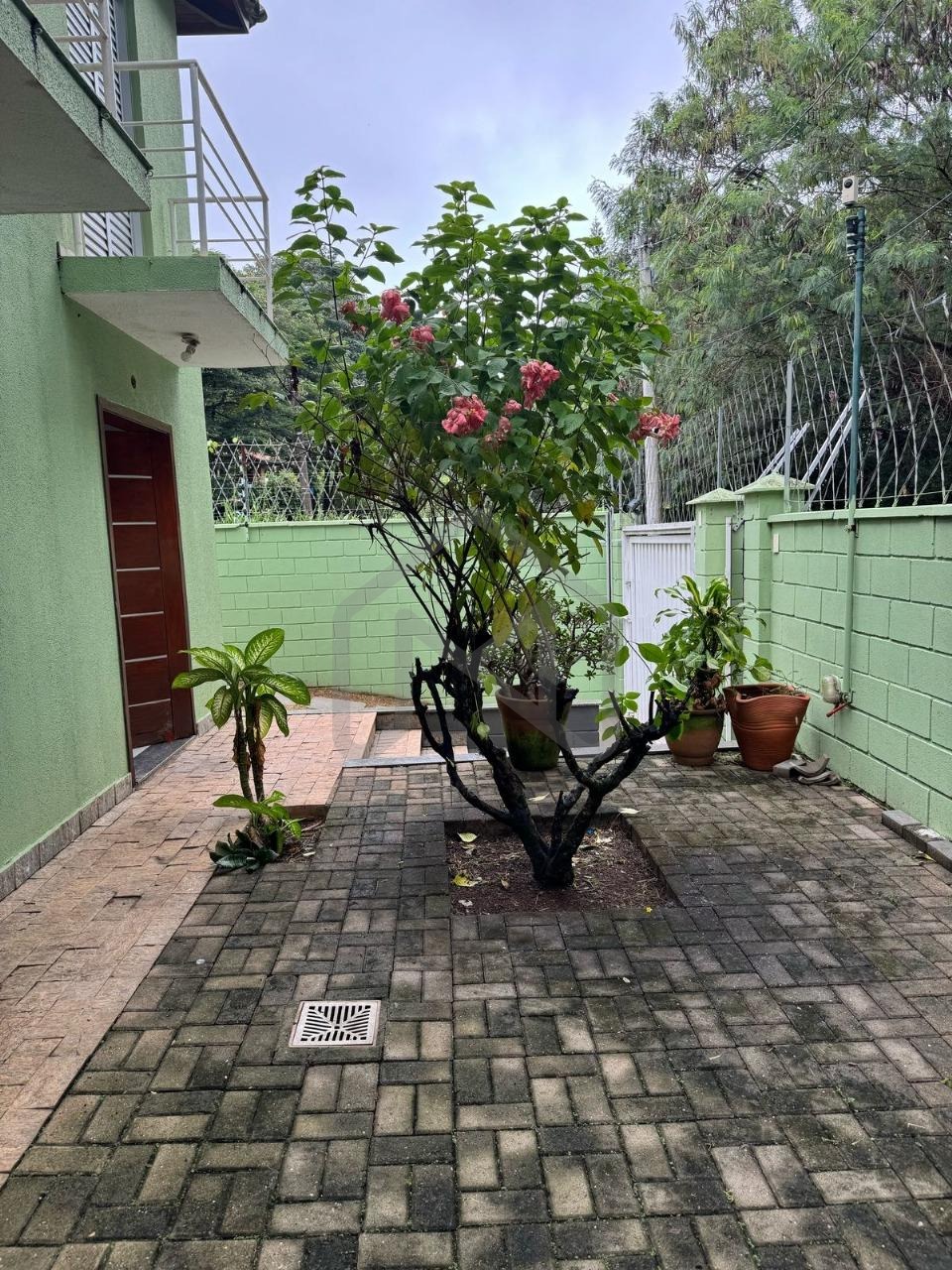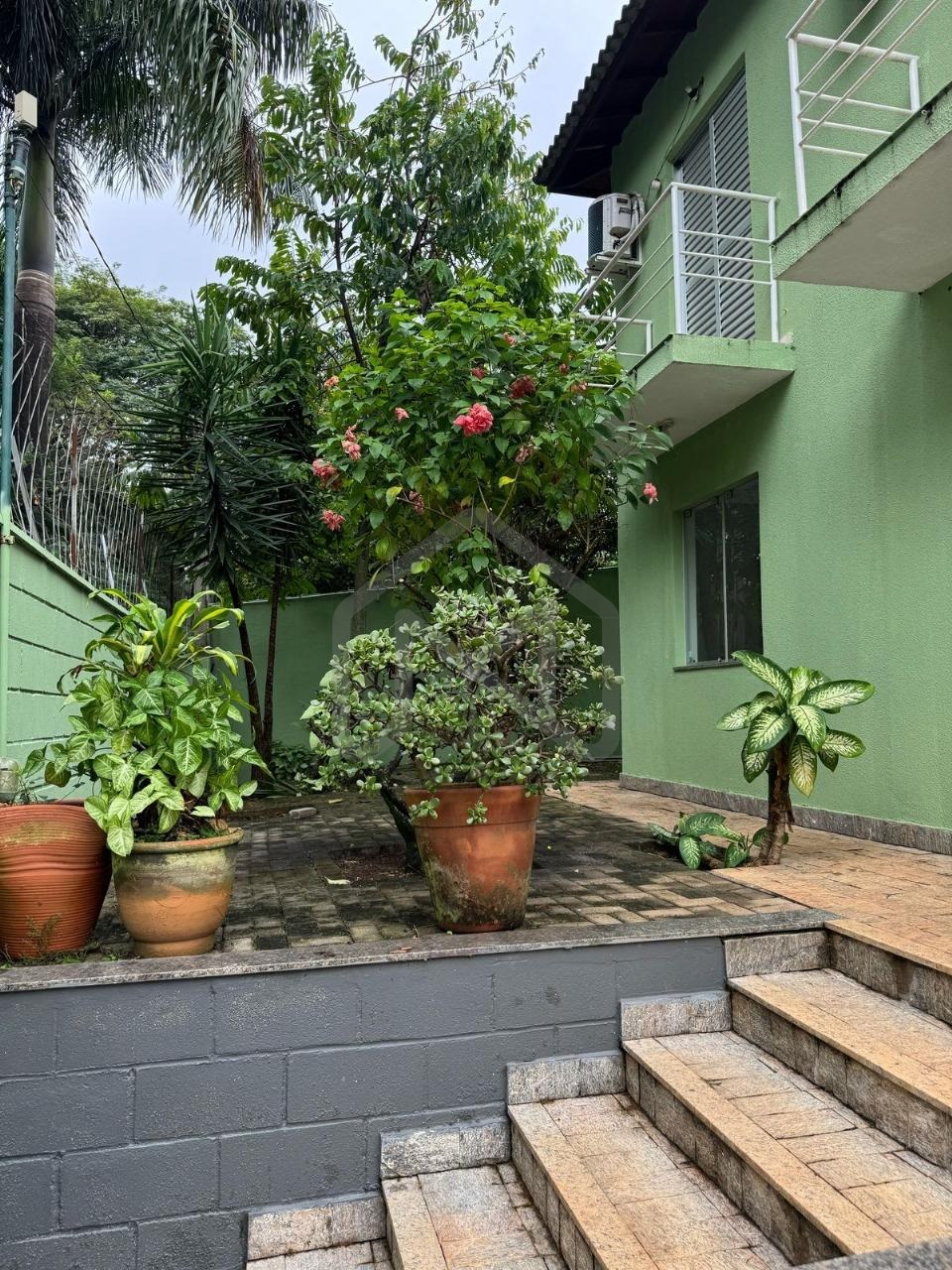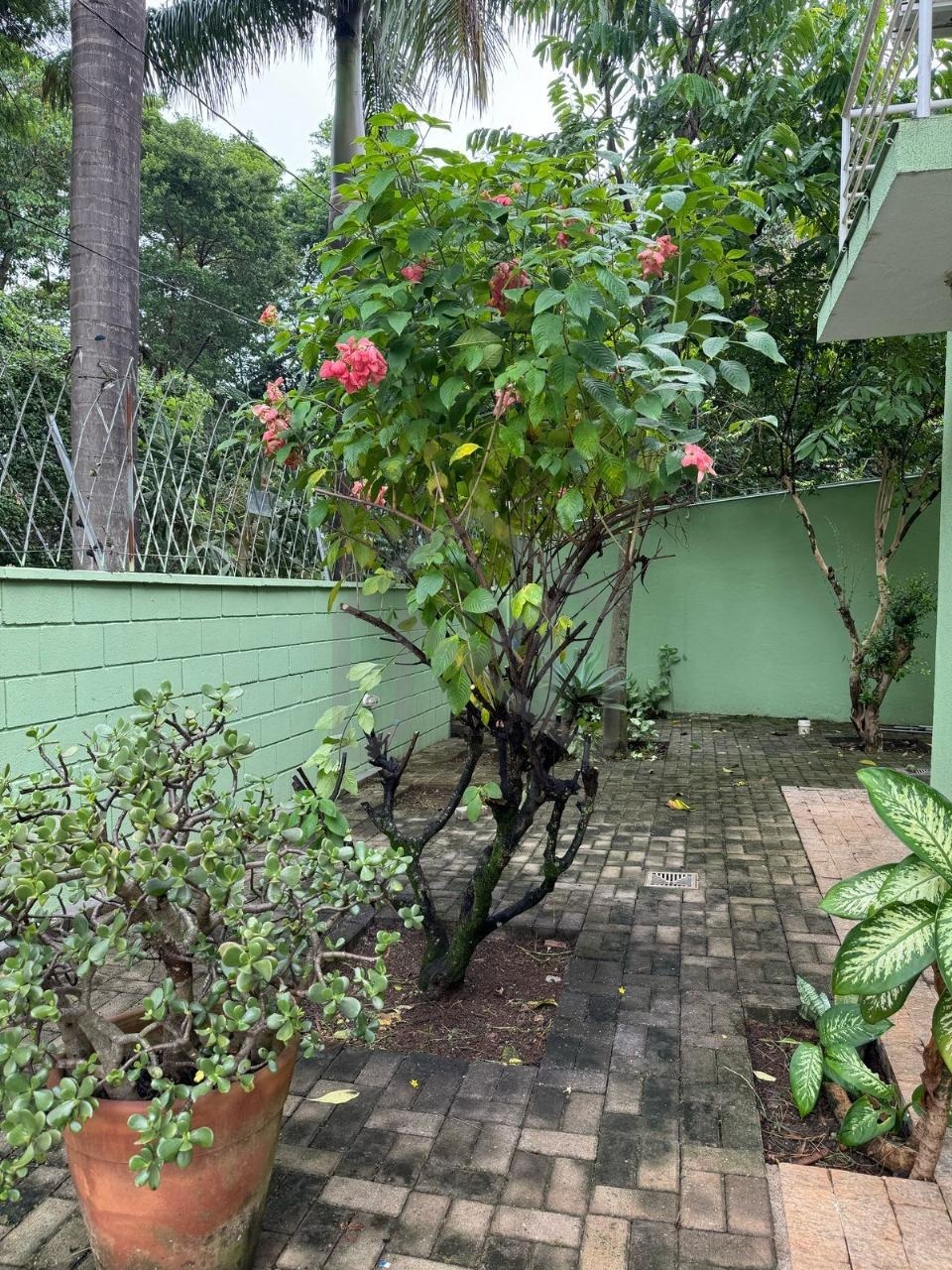 Quintal com jardim e árvores frutíferas (Pitangueira, Caqui, Fruta do Conde e Jabuticabeira).