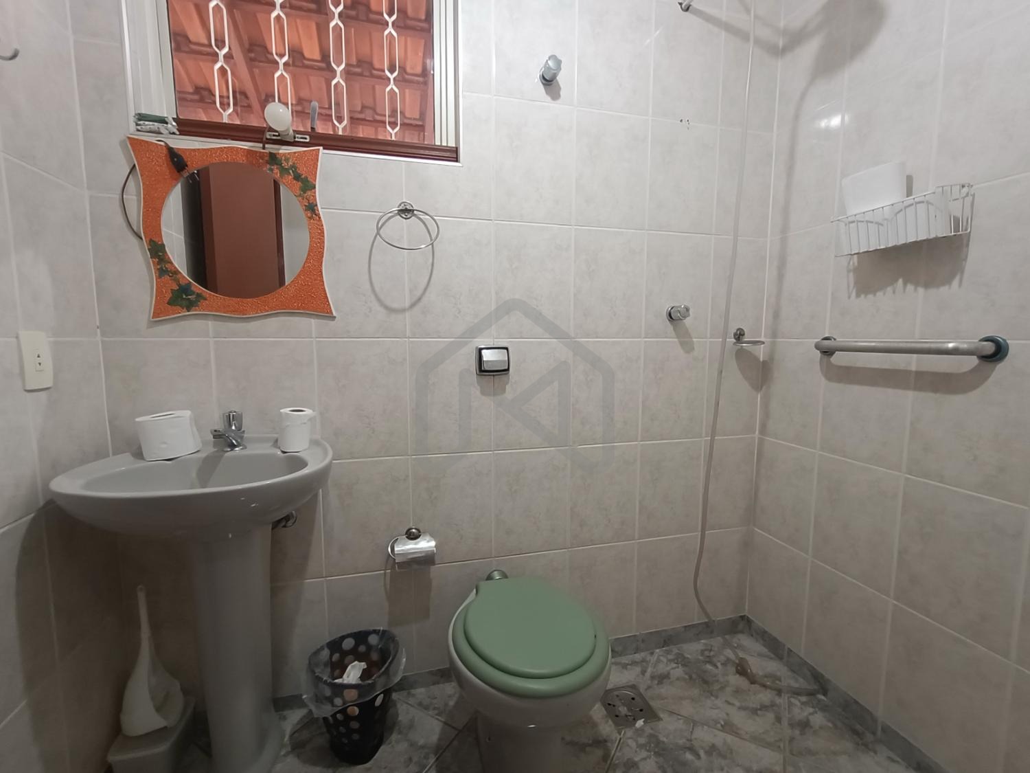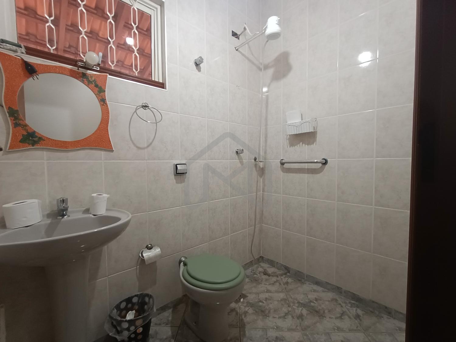 Quintal com Edícula contendo uma varanda com churrasqueira e pia, 01 dormitório com ar condicionado e banheiro social.